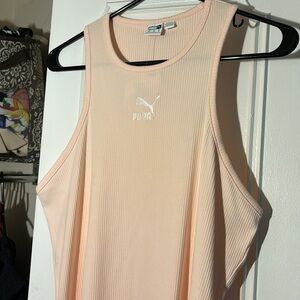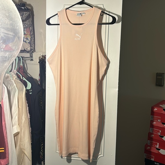 Ribbed, mid thigh (no booty) with booty fits more like mini skirt length.