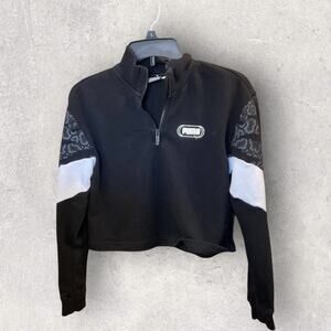 Puma Rebel Half Zip Sweatshirt Women’s XS Black Gray Cropped Pullover Crewneck