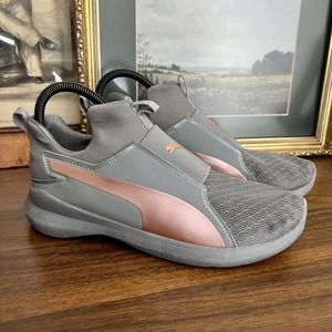 Puma Rebel Mid Rose Gold Women’s Sz 8 Charcoal Gray Pink Slip-on Round Toe