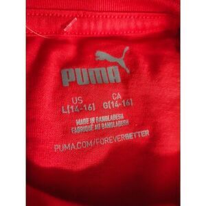 Add a pop of color to your young boy's wardrobe with this vibrant red Puma T-shirt. Designed with a comfortable regular fit and short sleeves, this shirt is perfect for any casual occasion. Made from high-quality materials, this T-shirt is durable and built to last. The Puma T-shirt is ideal for boys in size Large, and it can be paired with jeans or shorts for a trendy and comfortable outfit.