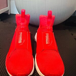 Experience the perfect blend of style and comfort with Puma's red sneakers, featuring a sleek slip-on design and a breathable knit upper. These vibrant sneakers are crafted for flexibility and lightweight wear, making them ideal for everyday activities. The contrasting white midsole adds a touch of modern flair, while the form-fitting collar ensures a snug fit around the ankle. Elevate your footwear collection with these standout sneakers from Puma.