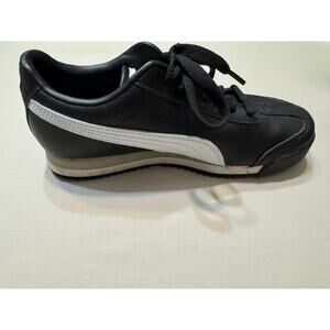 Puma Roma Women’s 7 Black White Gold Logo Leather Sneakers Excellent