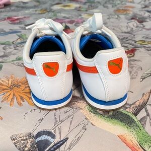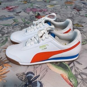 Puma Roma sneaker size 7.5. Rubber sole white orange and navy lace up. Never worn or used. No box.