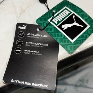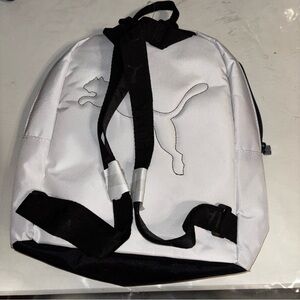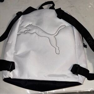 Chic Puma backpack in white. Iridescent logo on front. Main large pocket and one front zip pocket with adjustable straps. Brand new, never used. I believe they have been discontinued.