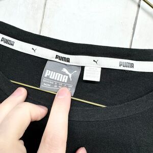 PUMA Shirt Women Size Medium Graphic Black Short sleeve Crewneck Gold Logo