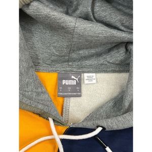 Add some color to your wardrobe with this stylish Puma Signature Hoodie in Gray. The hoodie features a graphic print pattern, long sleeves, and a drawstring closure. It is made of 100% polyester and has accents like an embroidered logo, hood, and pockets.