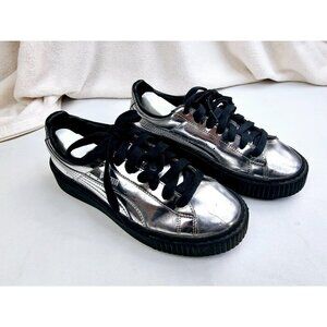 Puma Size 6 Womens Silver patent Leather Low Lace Platform Logo Fashion Sneakers