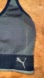 Puma size medium athletic bra. Top features a 73/20/7 nylon/poly/spandex stretchy material; blue decorative pattern; racerback straps; and Puma logo on left lower side. Perfect for running, yoga, exercise, etc. Excellent used condition from a smoke free home. Refer to pictures for measurements/sizing, as it seems to run small.