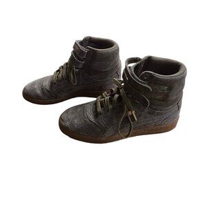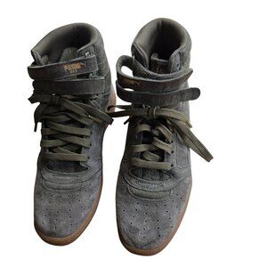 Puma Sky II High-Top Suede Sneakers Gray Olive Women Sz 8 Iconic Style