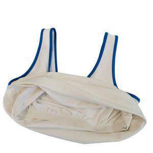Experience comfort and style with the Puma Slazenger wicking stretch tank top. Ideal for yoga, golf, tennis, it features a built-in shelf bra and comes in white and blue color, size M.