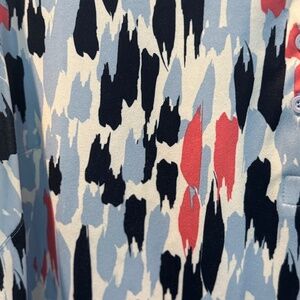 Puma Sleeveless Golf Shirt, Size L. EUC. Multi color print has 3/4 button up with shirttail hem with slit on sides for easy fit. Colors include light blue, navy and pink. lightweight. Measures: 21" arm pit to arm pit and 27 1/2" length.
