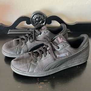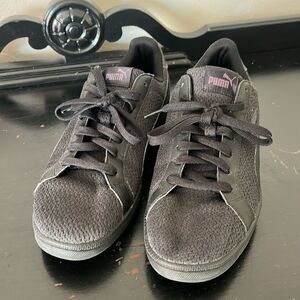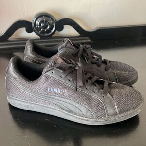 Puma Smash Knit C Solid Black Lace Up Sneakers 36545803