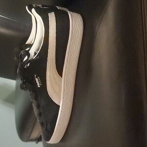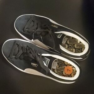 Puma Sneakers girls kids unisex Size 7m 7c size 7 jet Black Gray Side Stripe Suede Low Top Puma athletic shoes sneaker sneakers low cut low-cut flat flats classic sk8 skater skate nwt new
