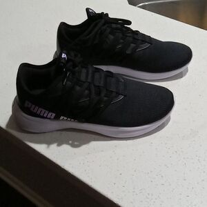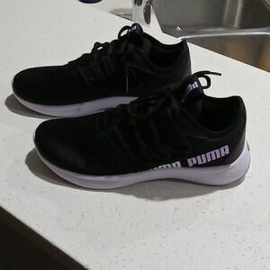Puma Soft Ride black sneakers with signature logo purple & white. Size 6.5 NWT
