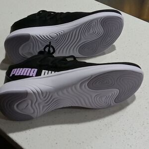 Puma Soft Ride black sneakers with signature logo purple & white. Size 6.5 NWT. soft foam insoles.