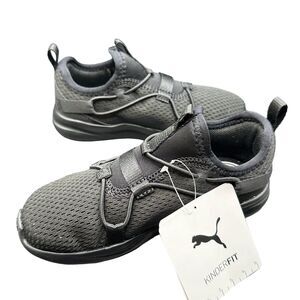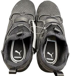 Puma SoftRide Rift Kinderfit Slip-On Kids Running Shoes Black Size 10C NWT. New in box. Knit and leather, cushioned mid-sole, wrap around lace, Cat logo on toe, PUMA wordmark on side. Lightweight and breathable.