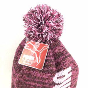 Puma Spellout Evercat Shimmer Pom Beanie Pink & Purple Women's Winter Hat NWT