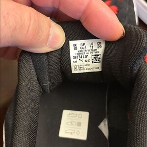 Comfortable sneakers with black uppers and red accents. Bold red spider motif on the heel for playful style. Padded collar and cushioned insole provide everyday comfort.