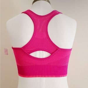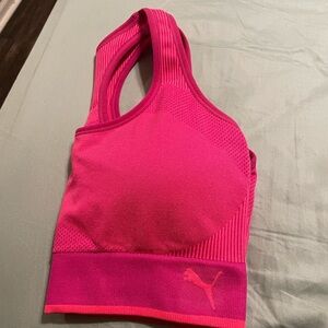NWOT Puma Seamless Women's Active Athletic Sports Bras. Medium Size (36 A&B bra size). Pink Color. Brand new without tag, not used, no rips, no stains, no stains. Raceback, moisture wicking, adjustable straps, removable mesh cup. Seamless sports bra that keeps you cool, dry, and comfortable at all times. Smoke free environment.