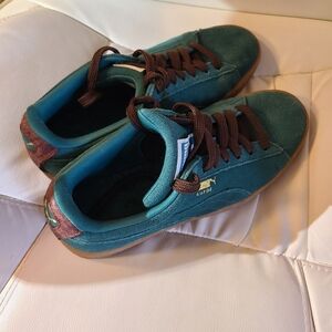 Stylish green sneakers with brown accents. Features Puma logo.in great condition size 7