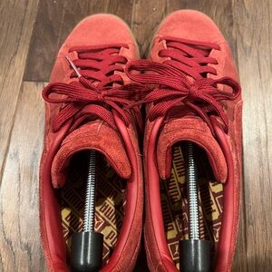 These are Puma sneakers in beautiful burgundy suede.