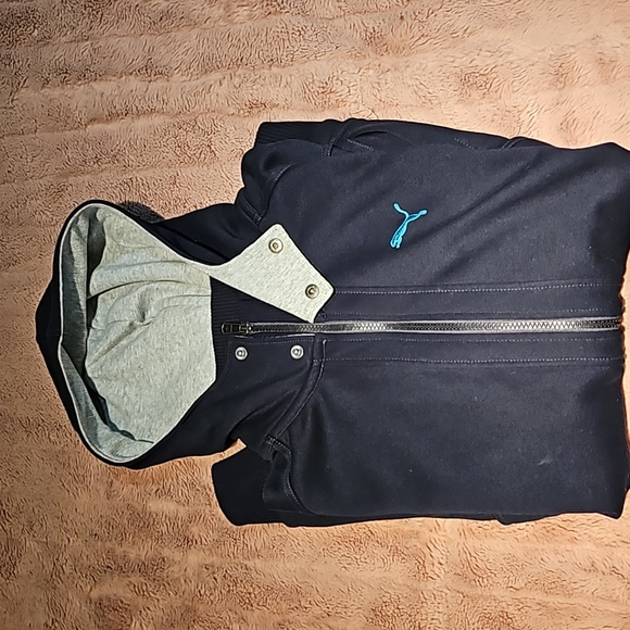 Puma Sweat Jacket Blue. zipup front with hoodie. Navy in color. very clean .