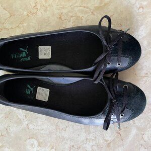 Puma Sz 7.5 Lily Ballet Lace Front Shoes Black Leather and Suede Y2K Balletcore