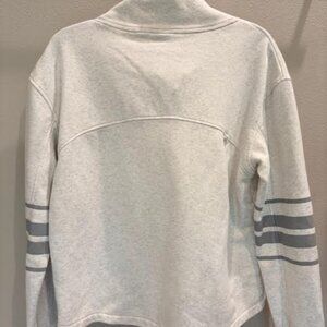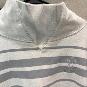 Puma heather gray with gray striped "TPC Sawgrass" golf sweatshirt. Funnel neck collar style.