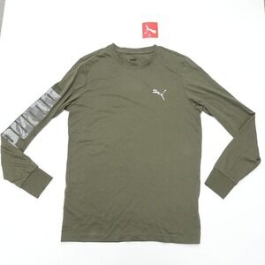 Puma T-Shirt Men's Small Olive Green Long Sleeve Crew Neck Regular Fit Pullover.