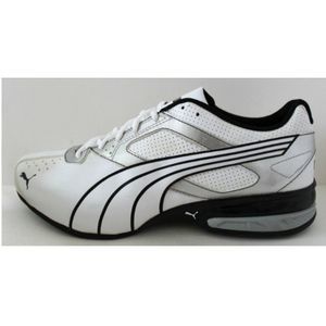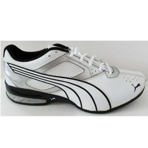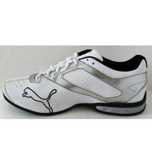 Men's Puma "Tazon 5 NM" Athletic Shoes - White / Black / Puma Silver Style #: 186852-04 [#1] These Puma shoes have some yellowing and discoloration. It is oxidation from warehouse storage. Please view all 12 photographs attached in the listing for details. [#2] These shoes have dirty markings and some colored stains from being stored in a warehouse. For three close up examples, please reference photos 9, 10, & 11. [#3] Lastly, some pairs may be missing their shoe box's lid and SD_390840558316