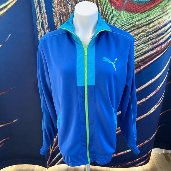 Awesome PUMA jacket with vibrant blues and green. Worn once. Bundle to save!
