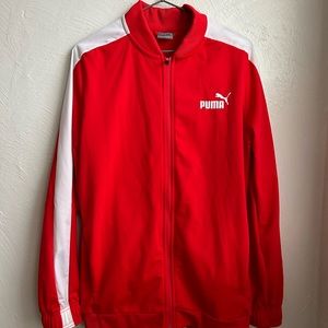 Awesome boyfriend track jacket in classic cherry red with contrast white stripe on sleeves. New condition, never worn. Sizes are a guide, rather than a guarantee of fit 😊