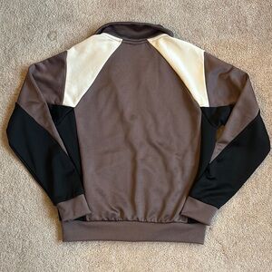 Stylish Puma track jacket in brown and black with cream accents. Features a zip-up front and logo detail.