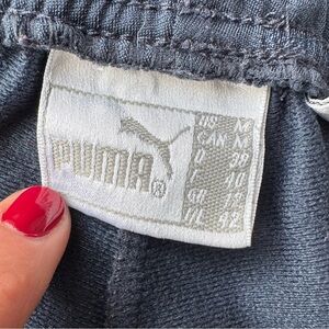 Puma, track pants, navy pink stripe pants, retro Y2K athleisure, flare leg track pants, Puma athletic wear, casual streetwear, elastic waist pants, vintage sporty style, fall fashion, winter activewear, gym training pants, logo pants, comfortable lounge pants, trending athleisure, retro athletic stripe, minimalist sportswear, mid rise pants, flared joggers, workout, loungewear