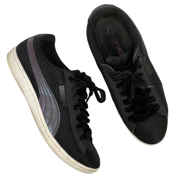 Puma Vikki Swan Black Low Top Sneakers Iridescent Accents Shoes Womens 8