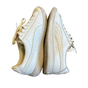 Puma Vikky Leather Sneaker White Gold Logo Lace-Up Tennis Shoes Size 8 Women's