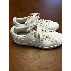 Puma Vikky White/Gold V2 Low Top Leather Women's Lace Sneakers US 7.5.