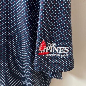 Stylish navy blue men's polo shirt with a classic design. Perfect for casual and semi-formal occasions. Cool fabric designed for golfers. Red & white star pattern on navy background.