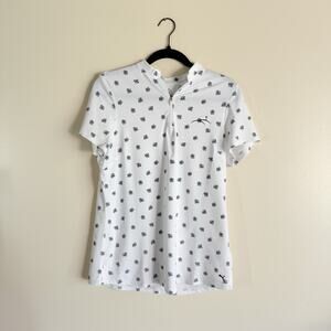 Puma White + Blue Hibiscus Floral Print Zip Closure Polo - Medium