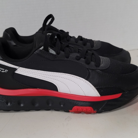 Step up your style with Puma men's sneakers in sleek black and vibrant red. Perfect for everyday wear.