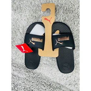 Puma Womens Black Rose Gold Cool Cat Slid Slippers Synthetic Leather Size 10 NEW