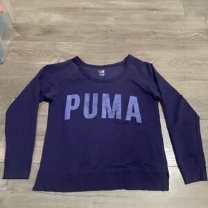 Puma Womens' Boat Neck Spell Out Logo Sweater Pullover Dry Cell- PURPLE Medium