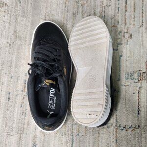 Puma Women's Carina Sneakers. Black with the Gold Puma Logo, size 8.5