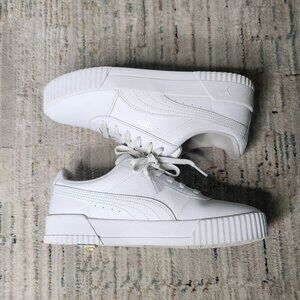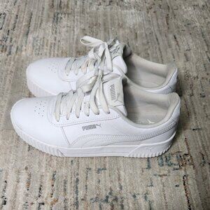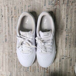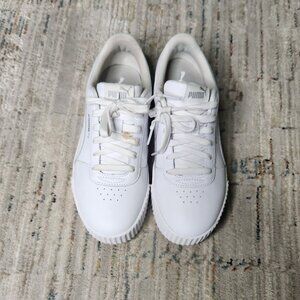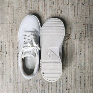 Puma Women's Carina Sneakers, White with the Silver Puma Logo, size 8.5