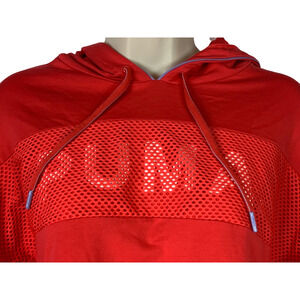 Puma Womens Cropped Hoodie Sweatshirt Pink Long Sleeve Drawstring Pullover XL