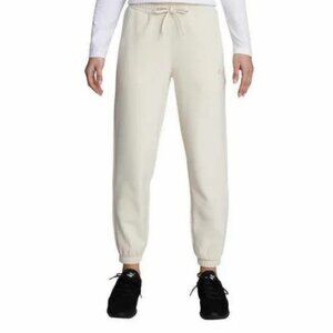 Puma Women's Fleece Pockets High-Waisted Logo Jogger Pants Tan Ivory