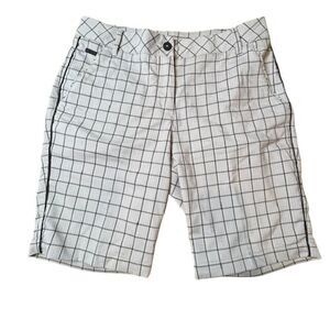 Puma Women's Golf Tech Bermuda Shorts Window Pane pattern Black White 8. Excellent condition. Great fabric . See photos for details and measurements. golf, vacation, beach, cruise, walking, hiking, camping, boating, fishing, pickleball, travel