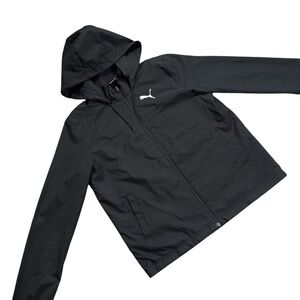 Puma Women’s Hooded Windbreaker, size Small. Awesome windbreaker jacket, great condition. 100% polyester. Please review all photos for overall condition and measurements.