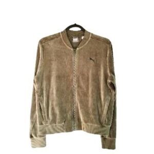 Puma Womens Jacket Green L Velour Full Zip Track Logo