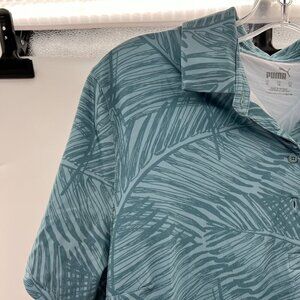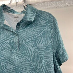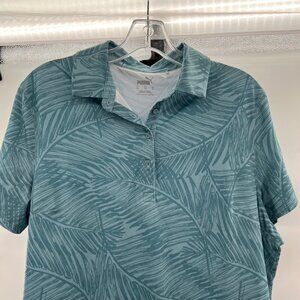 Puma Women's Leaf Print Polo Top Green Size XL